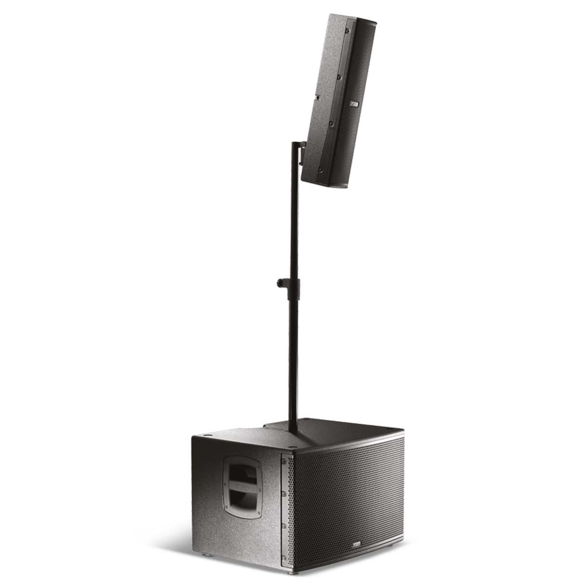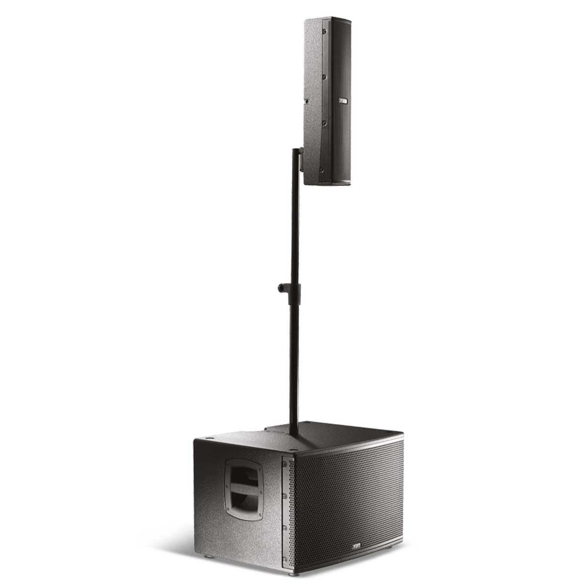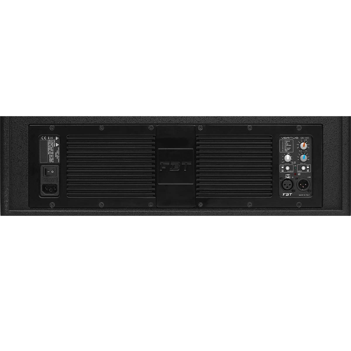 Il Vertus CS1000 è un array professionale che soddisferà il musicista alla ricerca di un PA compatto, facilmente trasportabile, modulare, pronto all’uso in pochi minuti ma di qualità “no-compromise”. Inoltre è capace di integrarsi in modo elegante e poco invasivo in qualunque ambiente ed installazione che richieda un suono di grande qualità ed una caratteristica direzionale controllata. Il cabinet del subwoofer, configurato in bass-reflex, dispone di un altoparlante da 12″ a escursione lunga, di un modulo di amplificazione a due canali in Classe-D, ed un vano per contenere l’asta di sospensione ed il satellite. Il satellite passivo in multistrato di betulla è connesso al sub tramite un cavo speakon in dotazione. Contiene 6 altoparlanti al neodimio da 3″ full-range. La dimensione contenuta in larghezza della colonna permette una dispersione di 110° nel piano orizzontale. Nel piano verticale invece l’array di 6 altoparlanti disposti meccanicamente nel pannello a formare un j-array consente una dispersione verticale di 30° (+10°/-20°). Il subwoofer è dotato di una maniglia in alluminio con inserto in gomma per un’impugnatura confortevole, tramite la quale è possibile trasportare l’intero sistema composto da subwoofer, satellite, pali di sostengo, snodo e cavetteria per una comodità impareggiabile. Il modulo di amplificazione in alluminio pressofuso, senza ventole, ha un canale da 600W LF e uno da 400W HF in classe-D ad alta efficienza e dotato di alimentazione switching. L’elaborazione del segnale audio è totalmente digitale tramite DSP e convertitori a bassissimo rumore. Dotato di 8 preset di equalizzazione, consente di avere il suono appropriato ad ogni condizione di utilizzo. Il volume del satellite può essere regolato, rispetto a quello del subwoofer, da -4.5 a +5 in 8 step. Un filtro HPF selezionabile permette di tagliare le frequenze troppo basse del subwoofer che potrebbero dare fastidio in certe condizioni (palchi risonanti, ambienti con acustica difficile, etc).